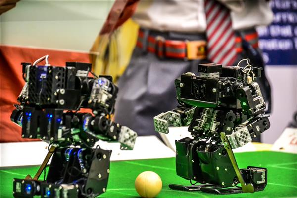 Footstick was an extremely popular event in the last edition of Robotics Olympiad. This Year, it will be Multiple players, three to be precise in each team. Each Team has to program all the 3 Humanoids such that they score most goals in the given time. Goals can be scored by all 3, using the body or the Stick on their hands; although goals scored using the Stick will have more points. Arena will be bigger than the Last edition.