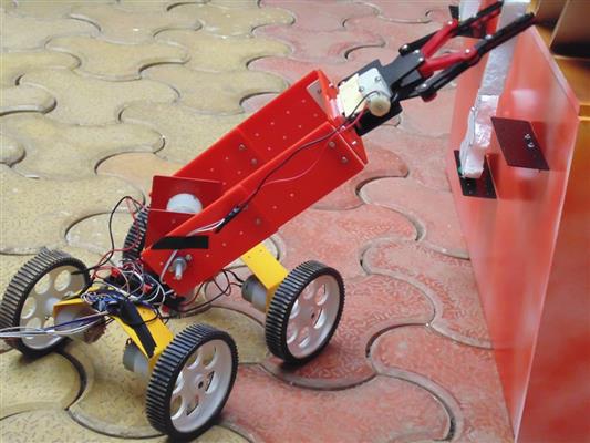 3. Bomb Disposal Robot - [Future Applications: Defense System& Civil] The Metrix Robot, manual wired remote controlled Terrestrial Robot will be used to carry a Ticking Bomb to Safe zone & then diffuse the bomb. For Carrying the Robot to a Safe zone, a trolley will be provided. The person manoeuvring the Robot has to place the bomb in the trolley & then pull it/drag it to the safe zone. Once in the safe zone, the robot has to use the cutter in its arm to cut the red wire. The team which performs the task in shortest time wins the event.